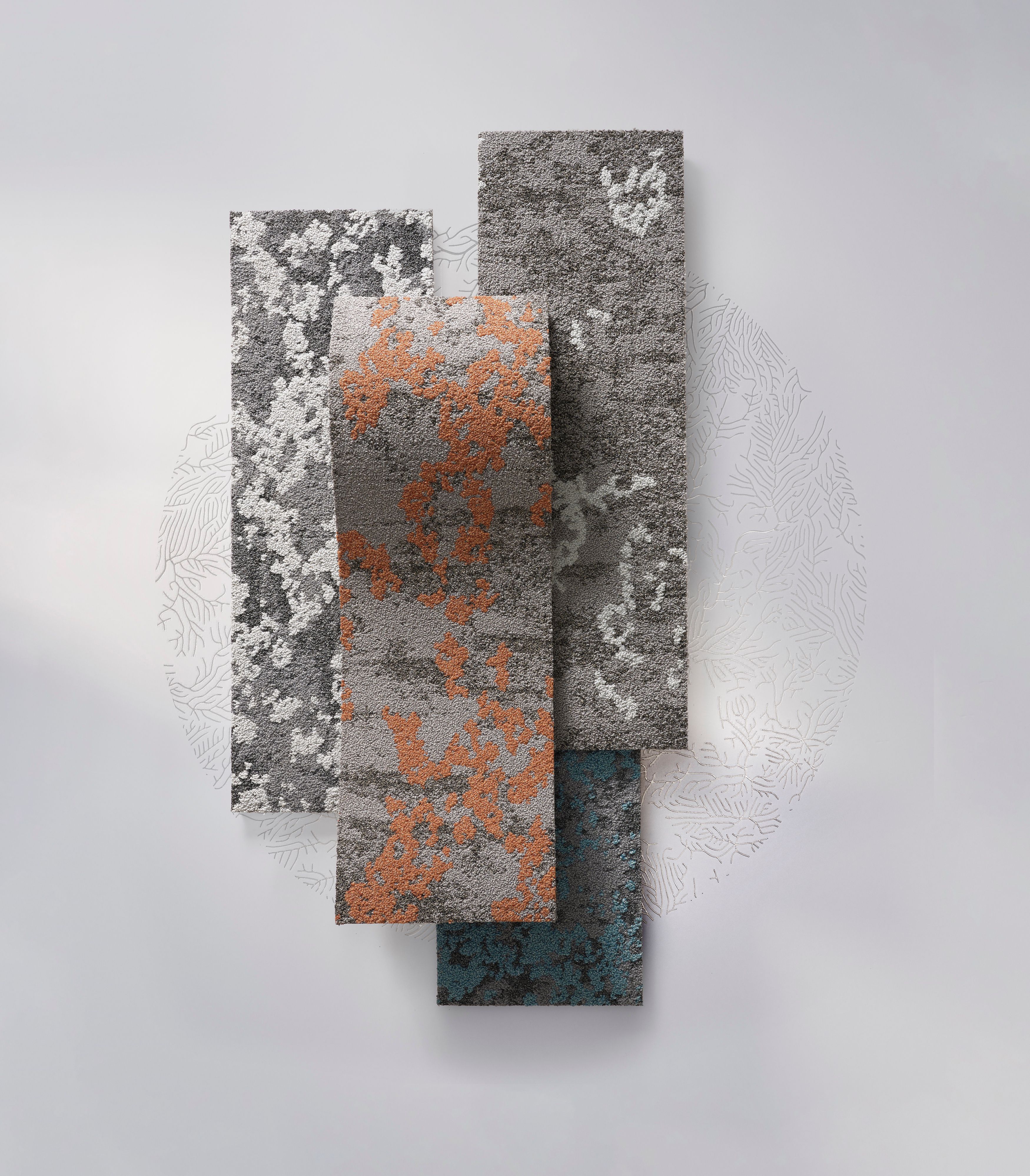 Meet Lichen Community, designed in collaboration with McLennan Design, a modular carpet collection that connects us to a more restorative, climate positive future. This fresh take on the original Lichen collection offers an additional bark texture to join the popular stone one, serving as ground textures for the multi-hued lichens that grow together in place.