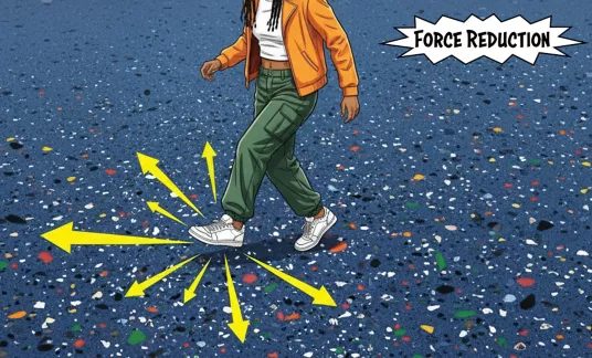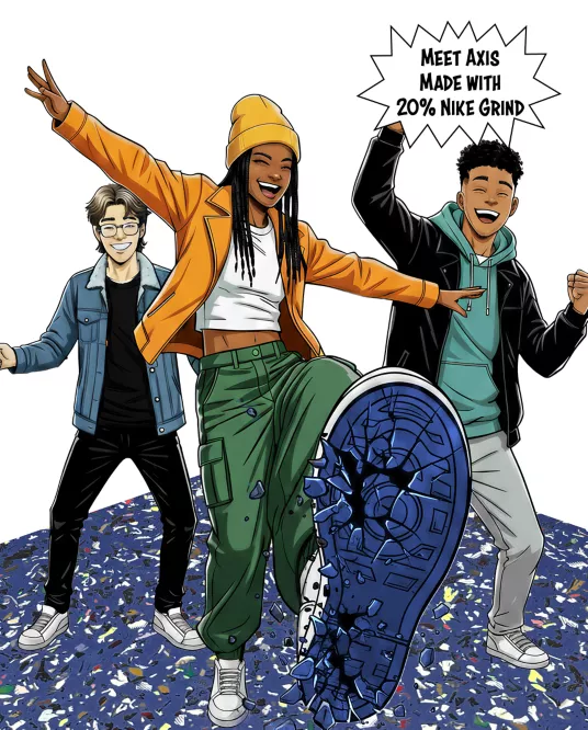 Axis, the bold outlier of the Hero Rubber made with Nike Grind collections, features Nike Grind rubber outsole components with visible materiality created by sneaker scrap elements. With 17 distinctive colorways, Axis is designed for environments that demand both performance and visual impact, offering durable comfort underfoot while delivering a distinctive look that energizes the space.