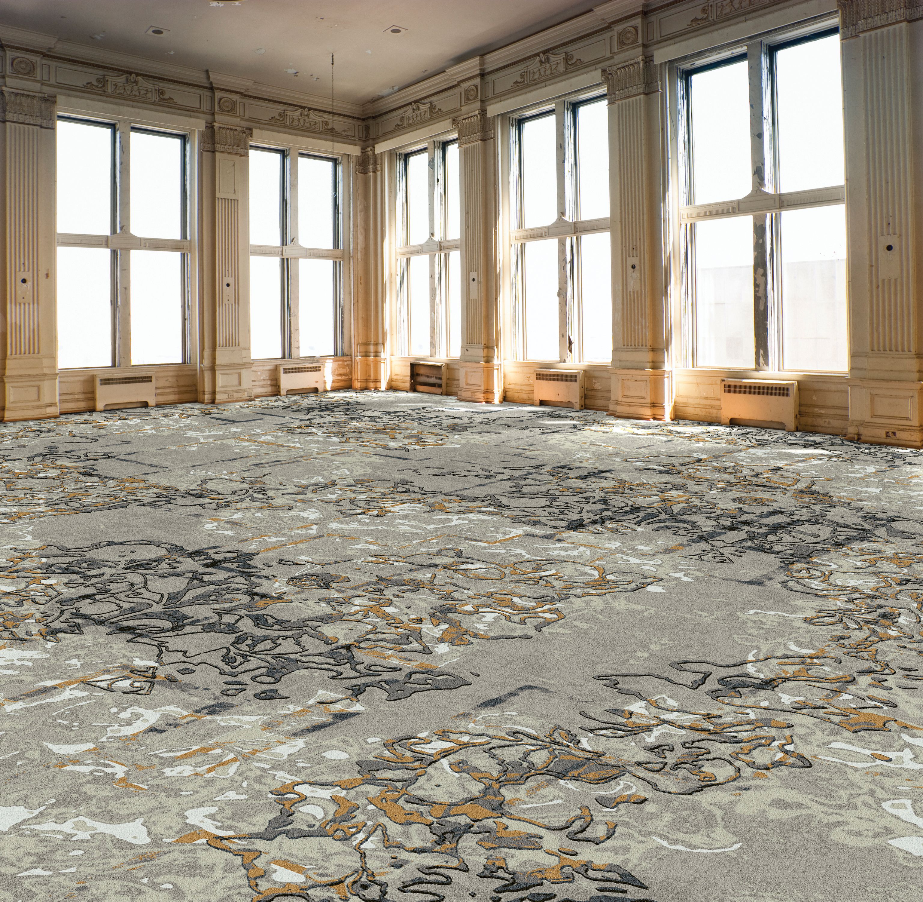 Goonj, Hindi for “echo,” channels a growing need to reconnect with our heritage to fuel evolving trends, as echoes from our past merge subtly with the present. Traditional motifs appear and disappear through various texture layers within this broadloom collection, which is influenced by William Morris-era floral elements.