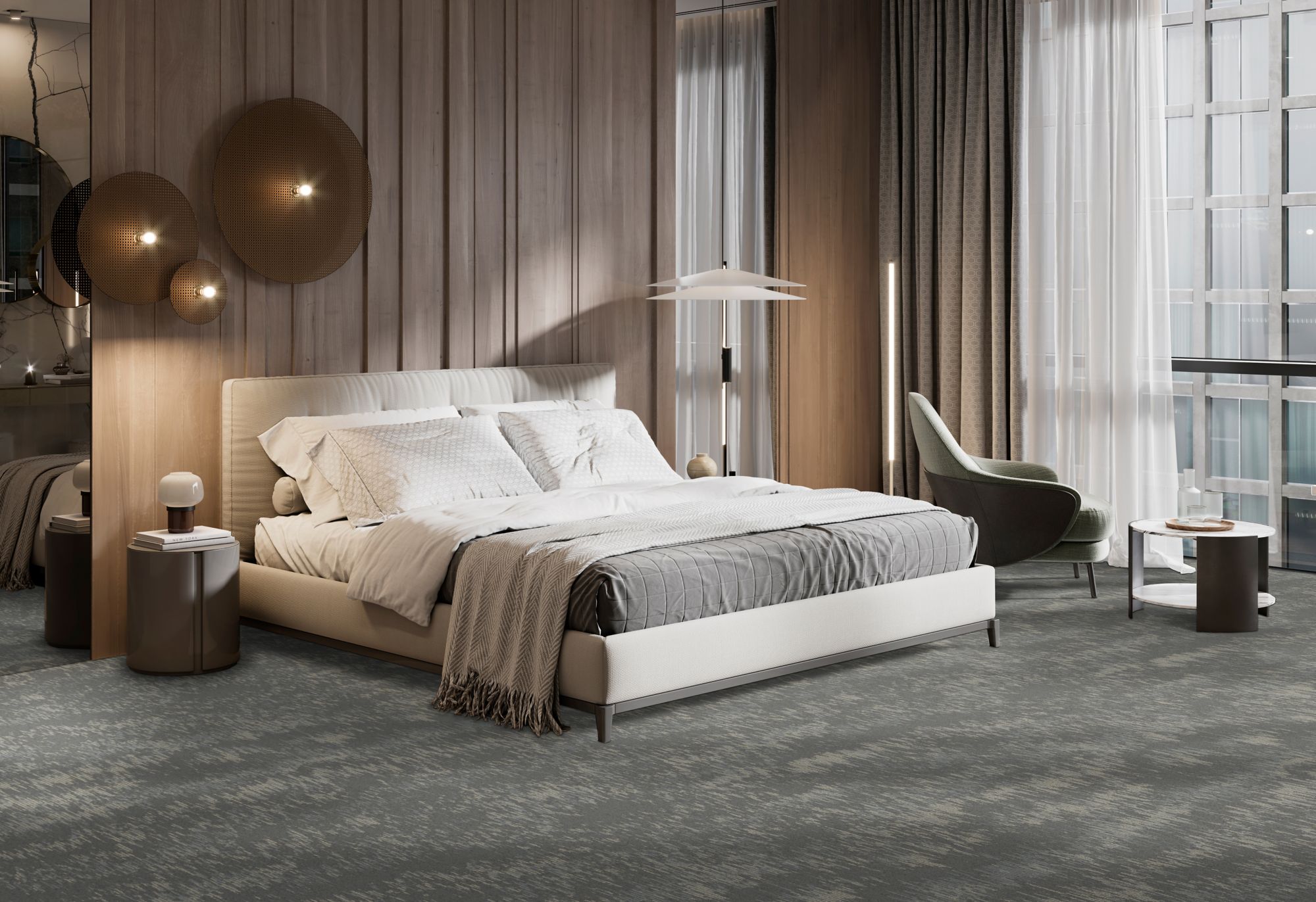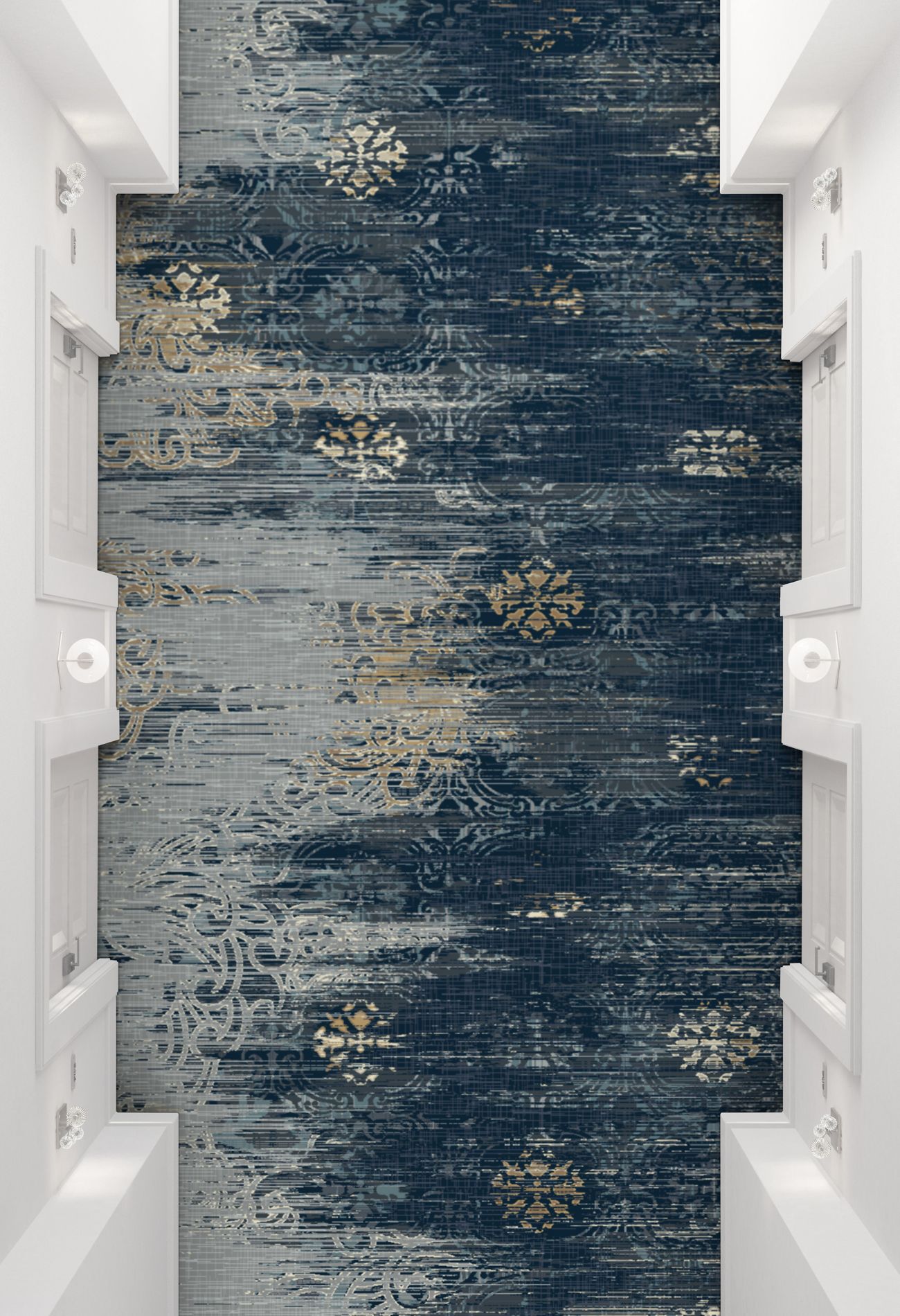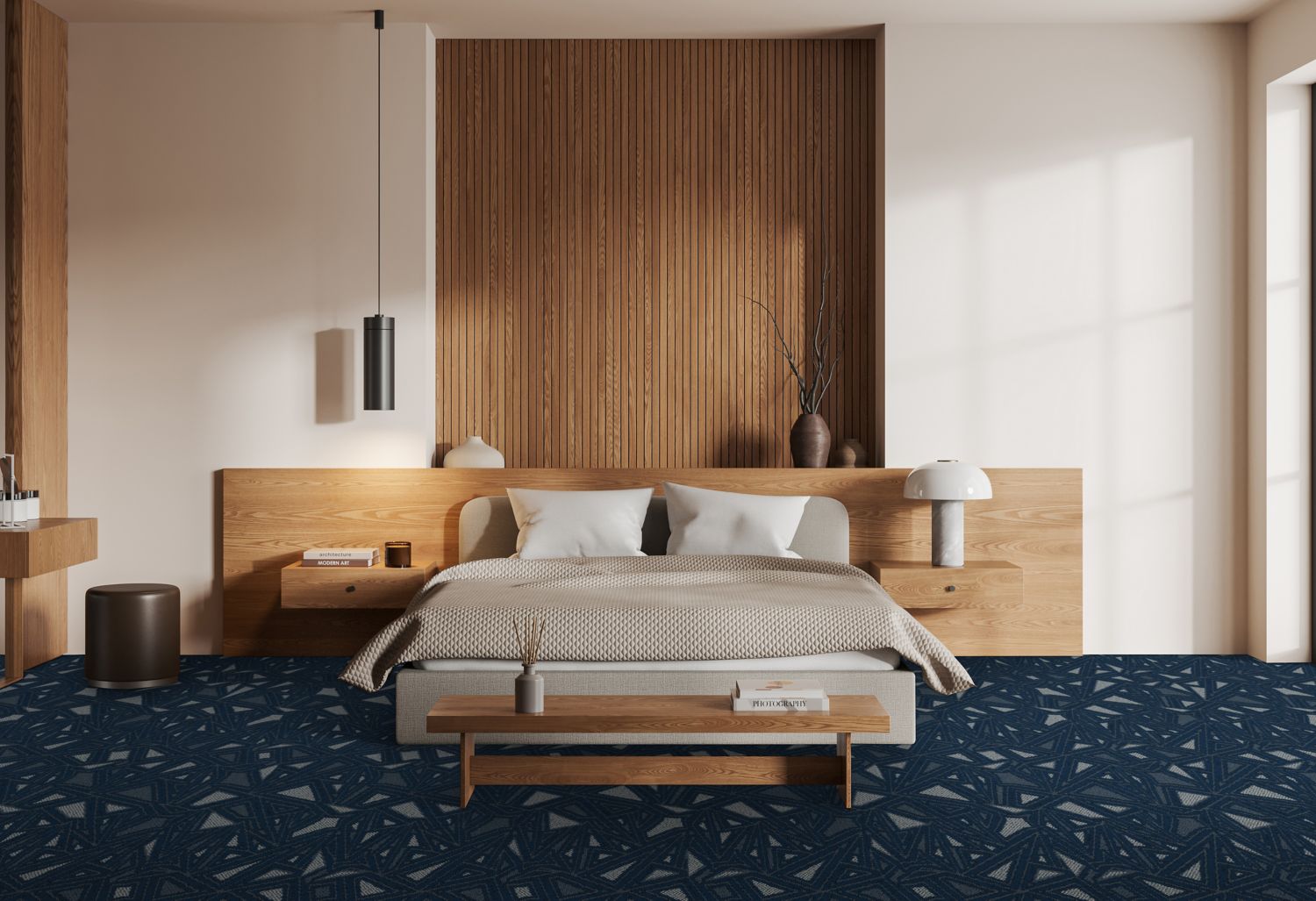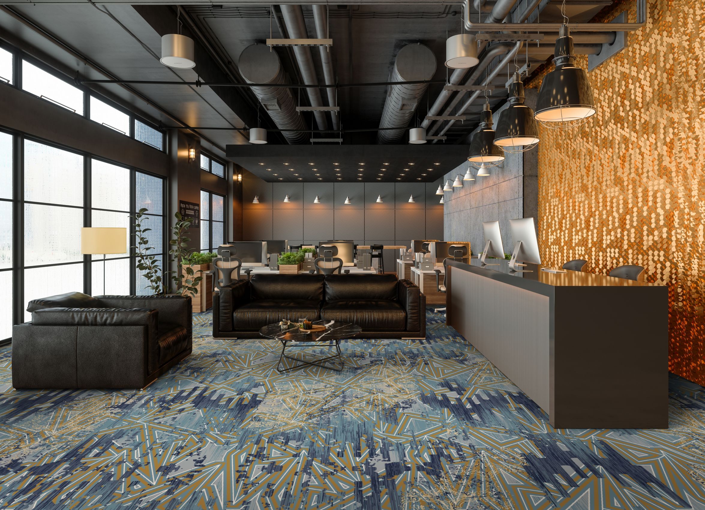 Discover the tranquil harmony of Japanese florals and geometric patterns in our Infuse 025 collection. Through a delicate fusion of florals and classic shapes, we achieve a captivating balance of softness and structure. Layered together, these elements offer a surprising sense of peace and fluidity. Our color palette, inspired by the serene essence of this collection, features tonal blues, greys, and caramel accents, inviting viewers into a world of tranquility. Experience the calming influence of nature's beauty and intricate design, seamlessly woven into every aspect of the Infuse 025 collection.
