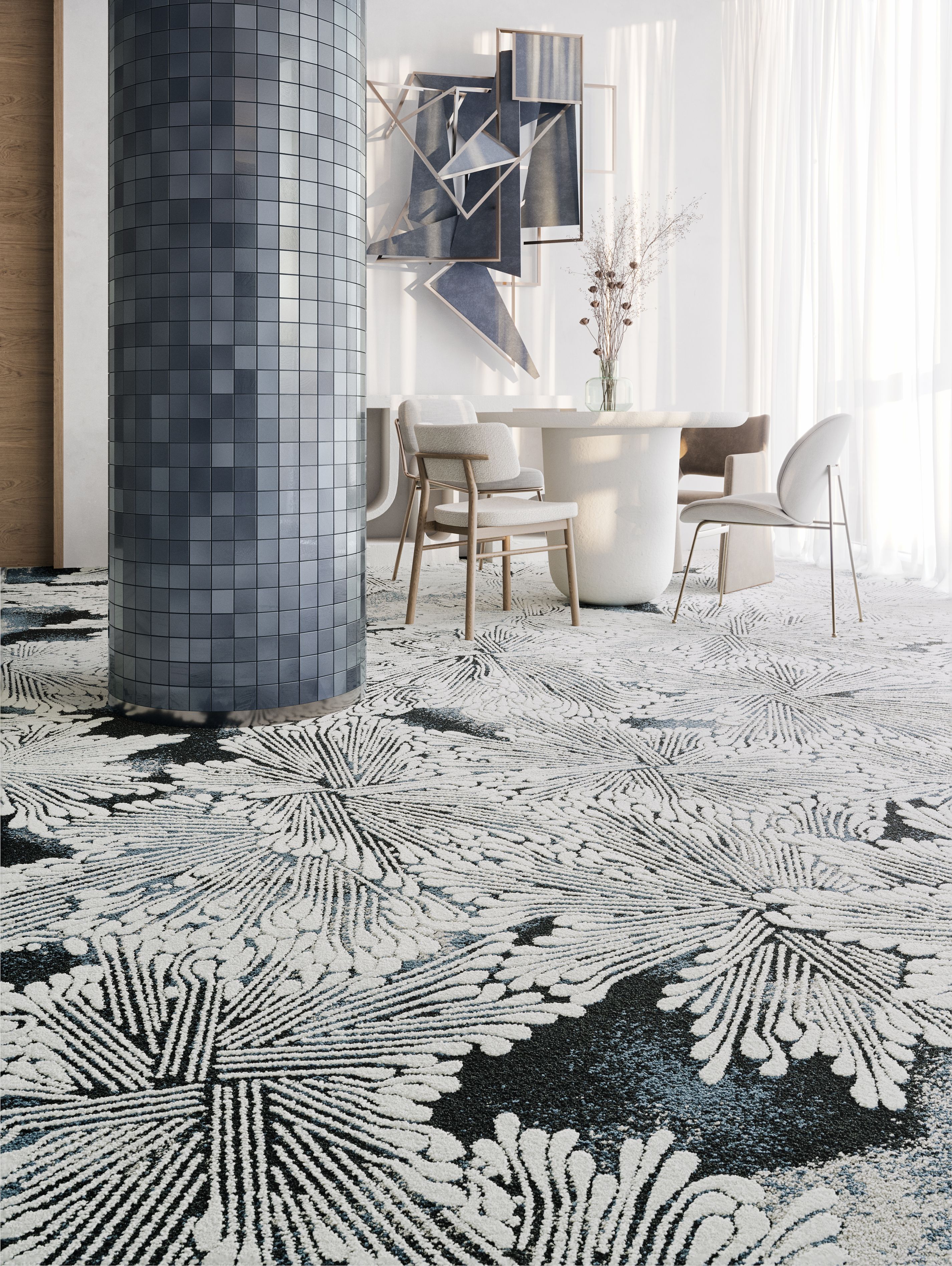 As part of Mohawk Group's Better Together Initiative, the Painted Perspectives commercial broadloom collection merges diverse artistic styles to celebrate the beauty of shared visual arts. Inspired by the art of Alicia Sterling Beach and Scott Benner from the ArtLifting community, this soft surface collection embodies collaborative work.