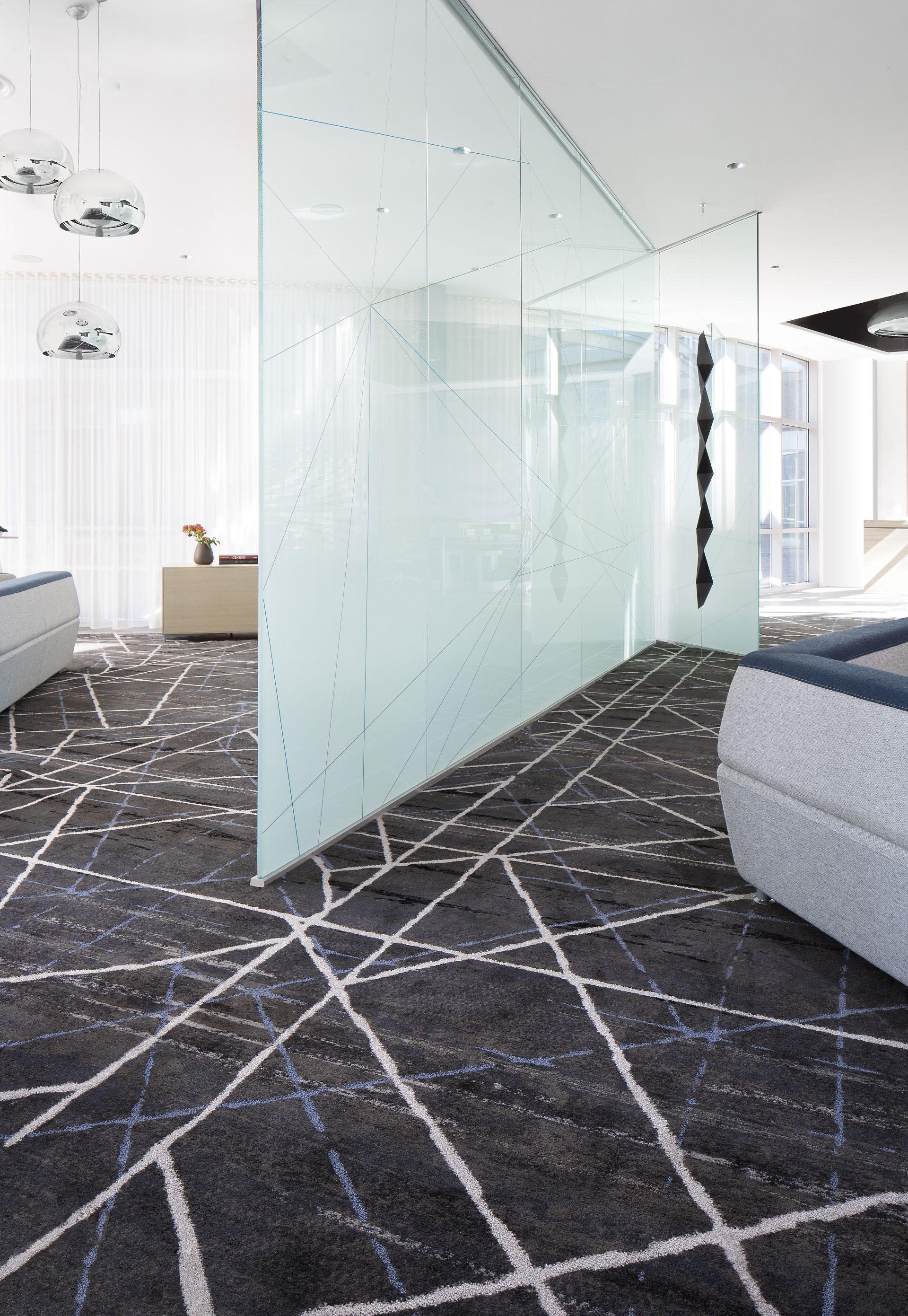 The physical structure of any building relies on a system of connected parts used to support a load. The scheme of this system is portrayed in Structure by using strong lines and angles as the support, along with the contradiction of soft blended textures in a medley of blue, gray and black underneath.
