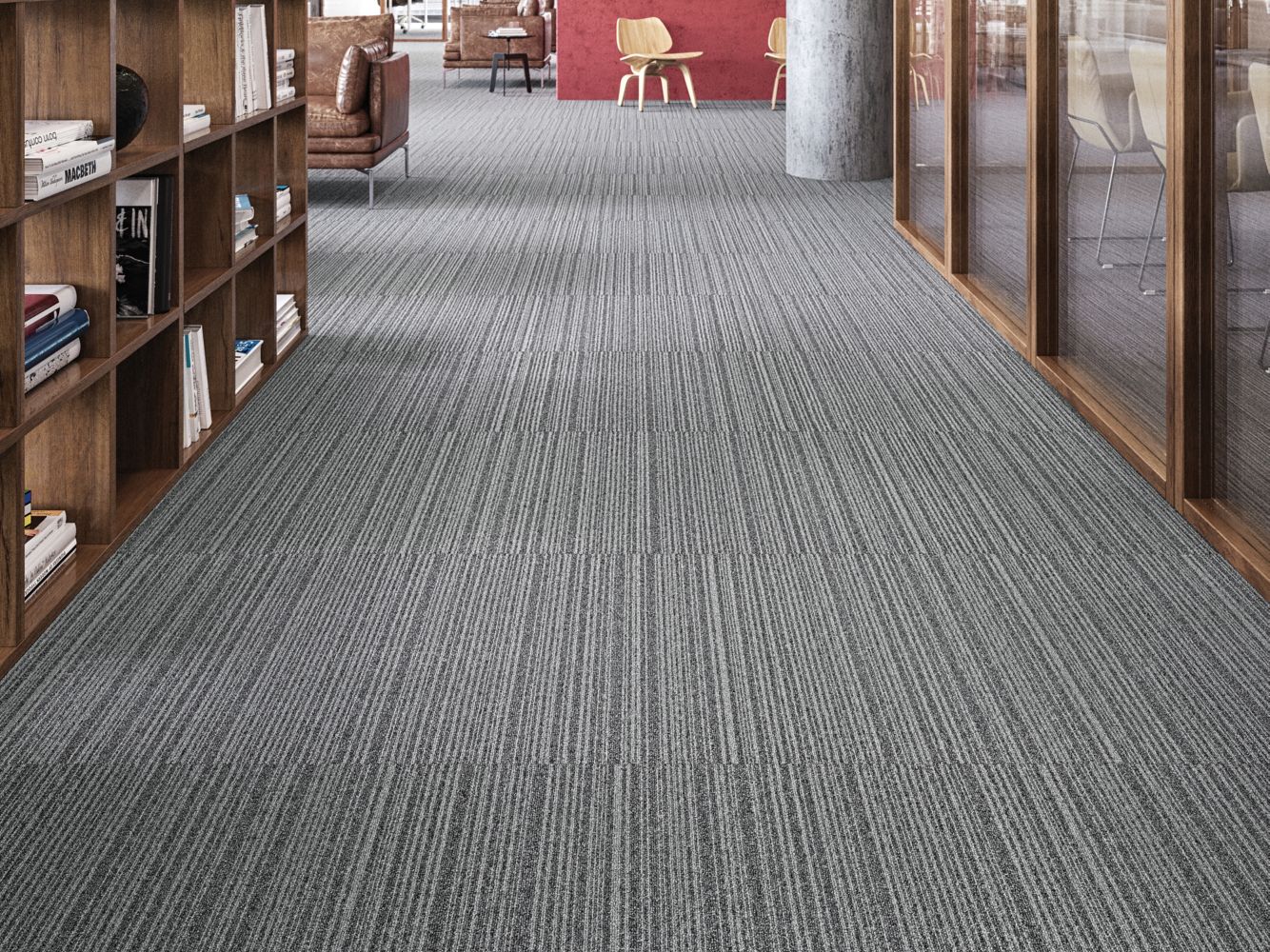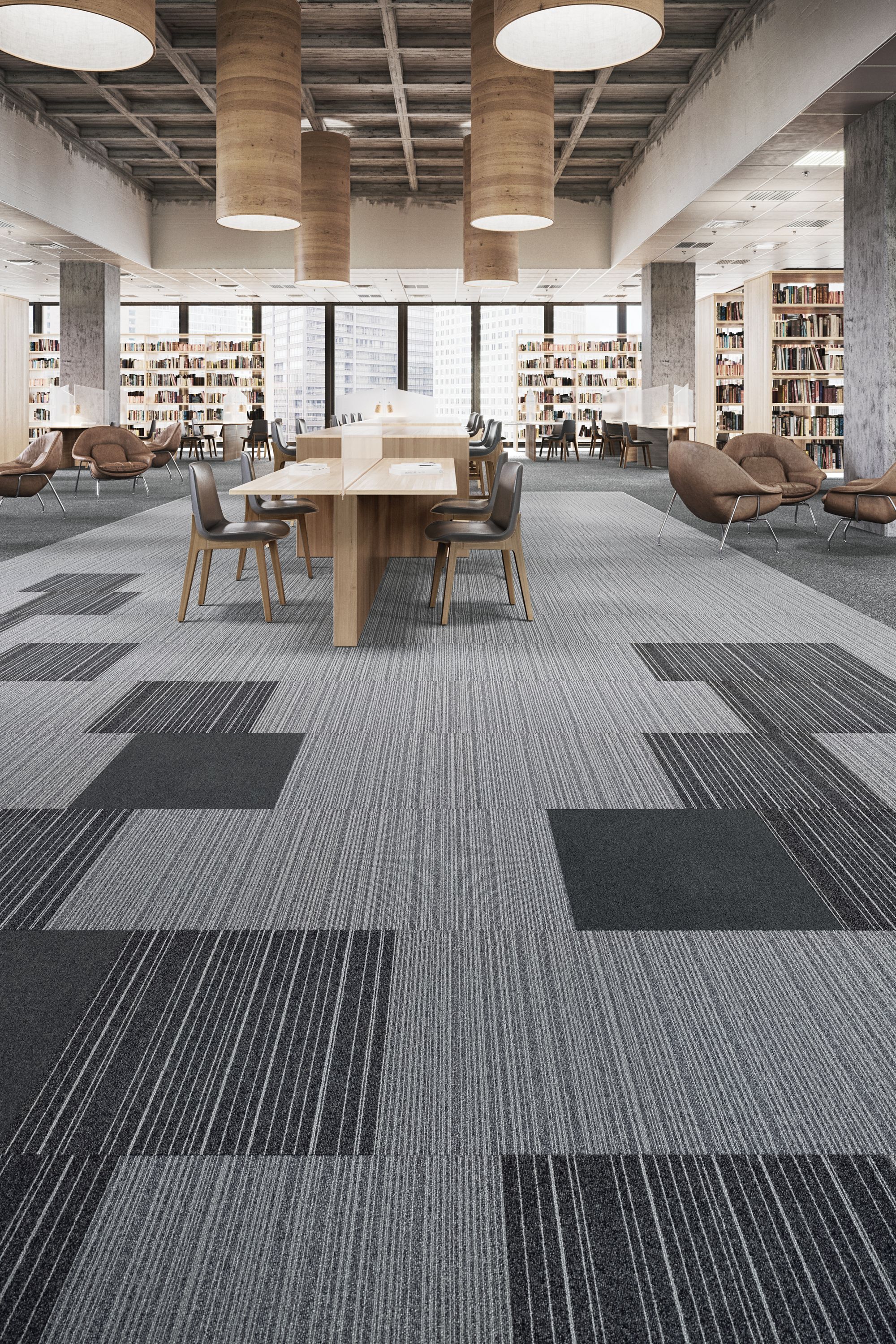 Art Intervention is an interaction with a previously existing artwork or space with the intent of changing the message to the audience. Central Point and Draft Point use random vertical lines in increasingly dense ratios to create movement across the floor, while Creative Spark “intervenes” with that movement, allowing a place for the eye to rest. The color palette is full of rich, vibrant color, grounded by sophisticated neutrals. We created this collection to give designers a tool to change the dynamics of a space in a meaningful, positive way.