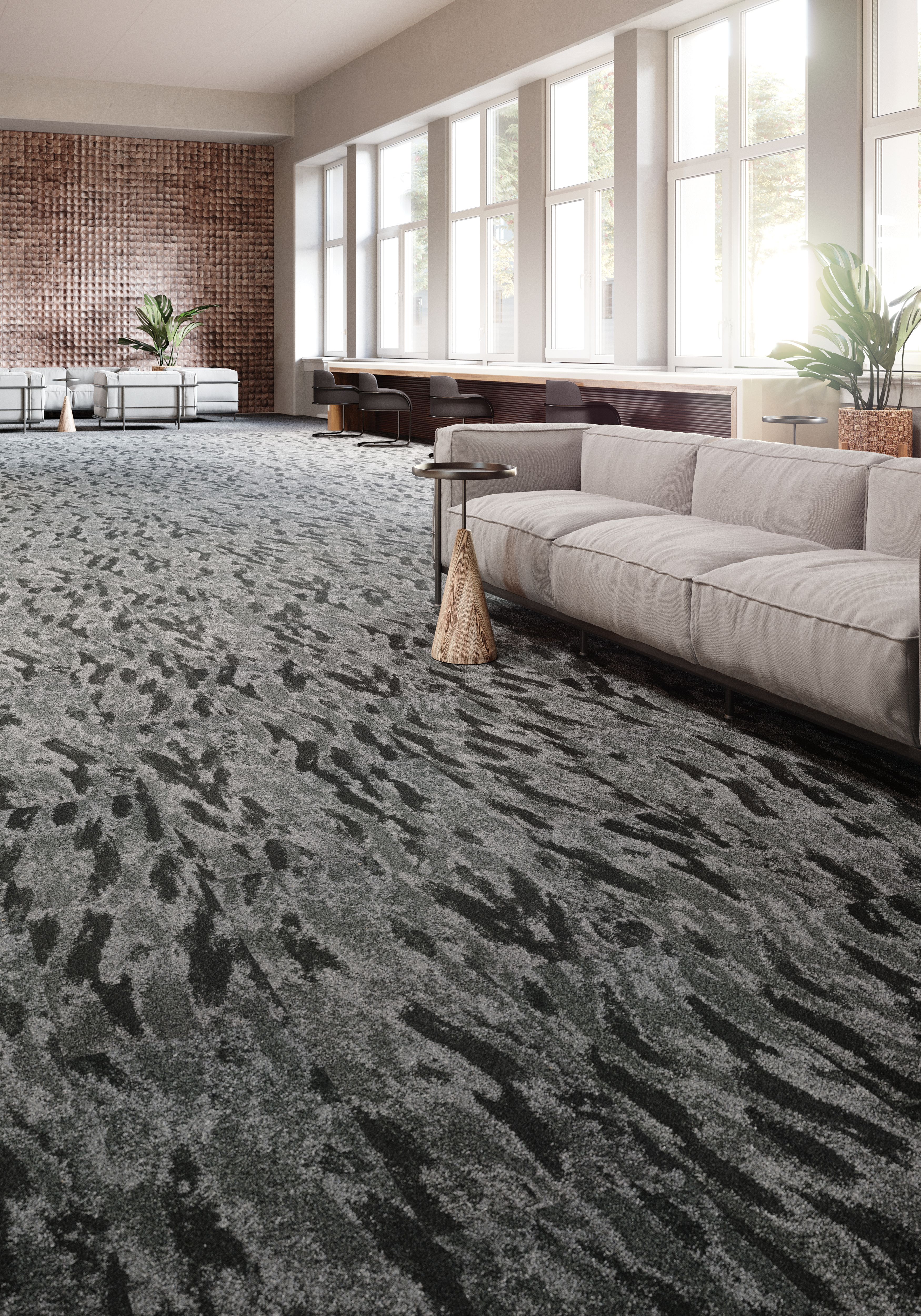 American birds of prey through color and patterning. Inspired by their plumage, mottled shades of black, brown, tan and grey take flight as a distinctive, yet versatile commercial carpet plank across two patterns—Feather and Flight. A stylized visual and simple texture create intriguing, coordinating combinations. The Owls Collection meets the stringent requirements of Living Product Petal Certification and is produced in Glasgow, VA. at Mohawk Group’s Living Site.