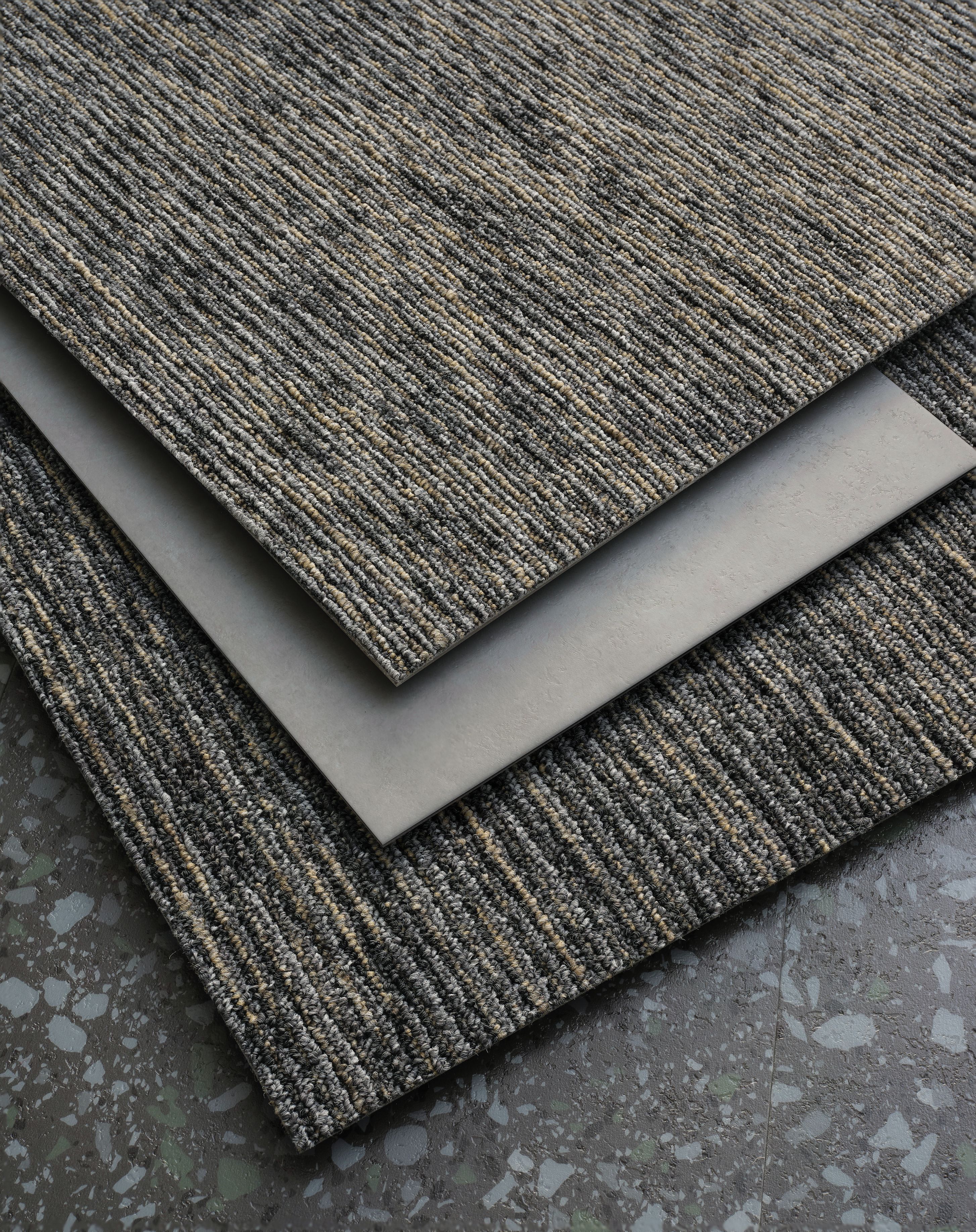 Water is the ultimate chemical solvent & transporter in the functioning of life on earth. Raindrops in accumulation drawn downwards through the pull of gravity, carve high energy fractal shaped rivers that flow to all inanimate forms of nature. Shape & Flow carpet tile combines the repetitive action of the input of data shown in tallies and ticks with the flux and flow of water to create a unique pattern. A selection of 8 colorways each represent a distinct story. A story about the impact of water. Both styles demonstrate the calming, yet strong force of rivers.