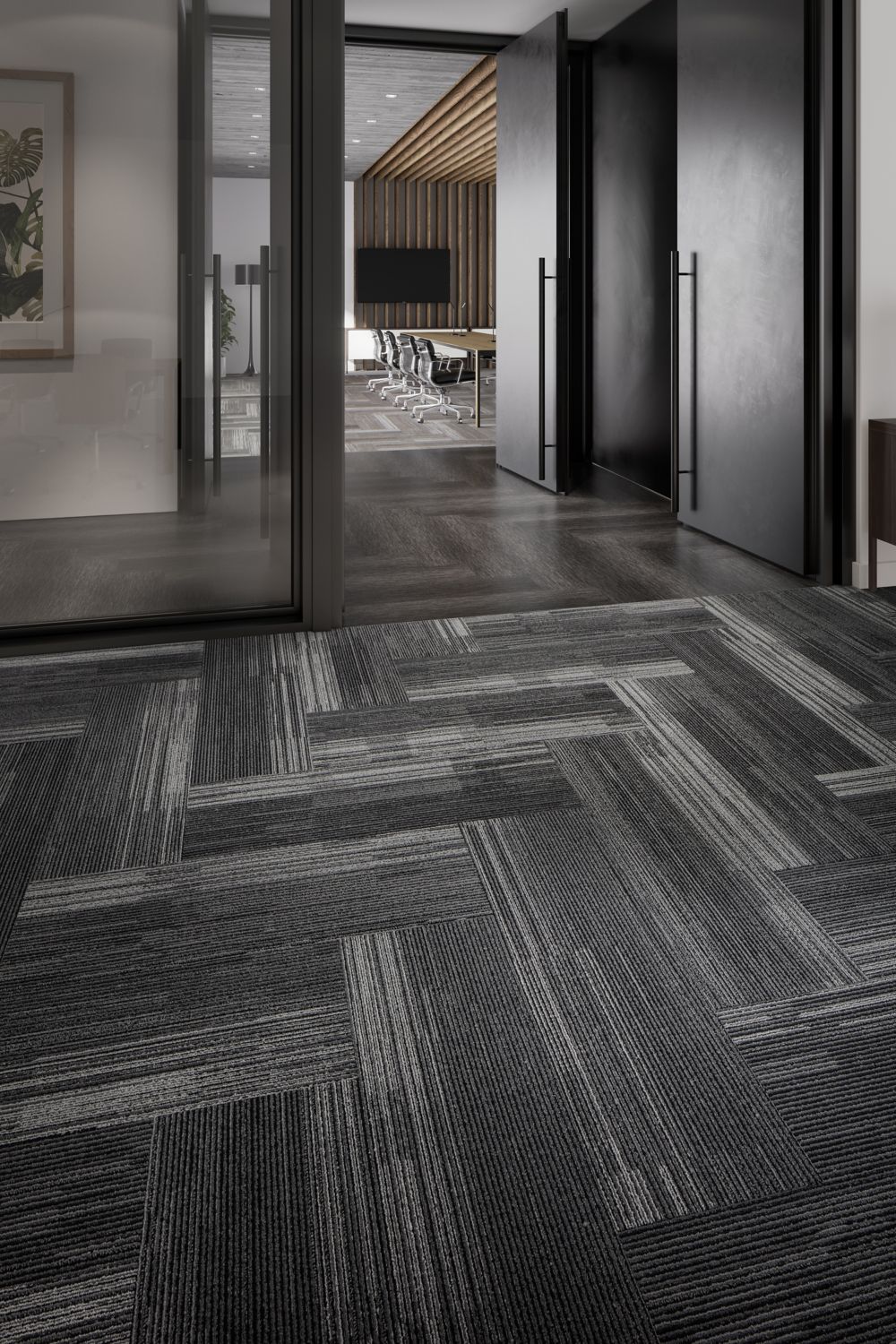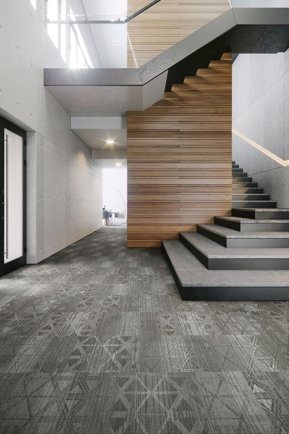 Variant Form explores the idea that form and function can be equally beautiful. Three patterns recall the aesthetics of exposed architectural elements – trusses, beams, railings – and the raw, unexpected textures and light/shadow interplay that they bring to spaces. Variant Form’s carpet tile styles and colors can be combined to create shifting floorscapes that integrate industrial elements with creative possibility for exciting, inspiring designs.