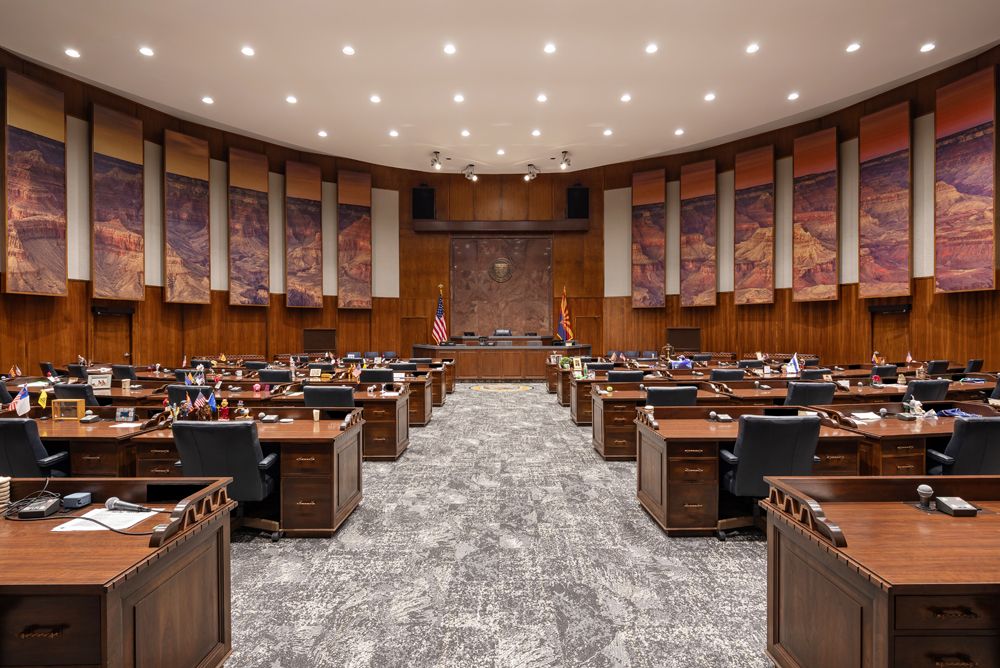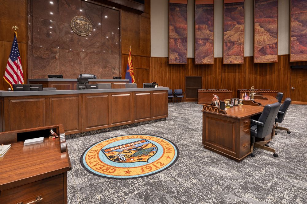 Products Used: MycoBiome & Biotope, Shaka II Broadloom (Custom for the state seal inset)